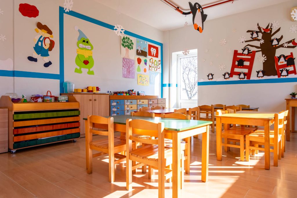 Οι αίθουσες είναι φωτεινές και ευχάριστες, διακοσμημένες με χρώματα και υλικά που ενθαρρύνουν τη δημιουργικότητα και τη μάθηση.